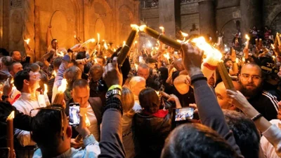 На пасхальное богослужение в храм Христа Спасителя доставили благодатный огонь — Коммерсантъ